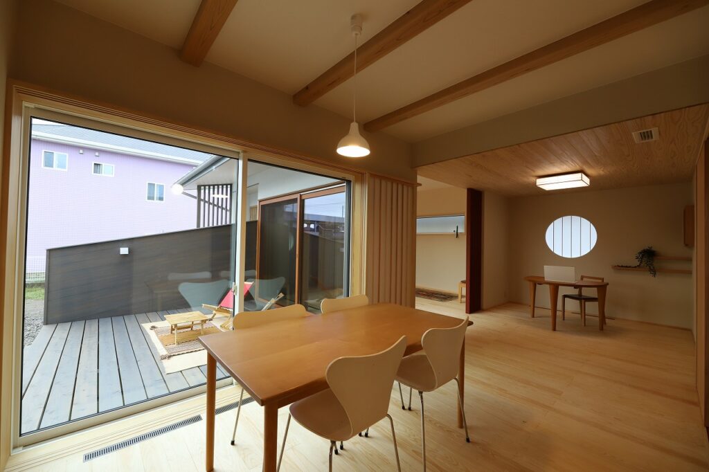 ▲デッキを中心にリビング・ダイニング・ワークスペースが