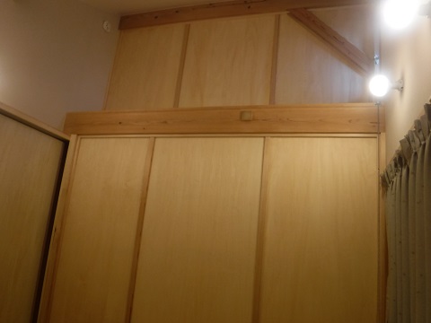 吹抜け手摺上に引戸を入れて仕切りにはシナフラッシュ戸を入れ込みます。