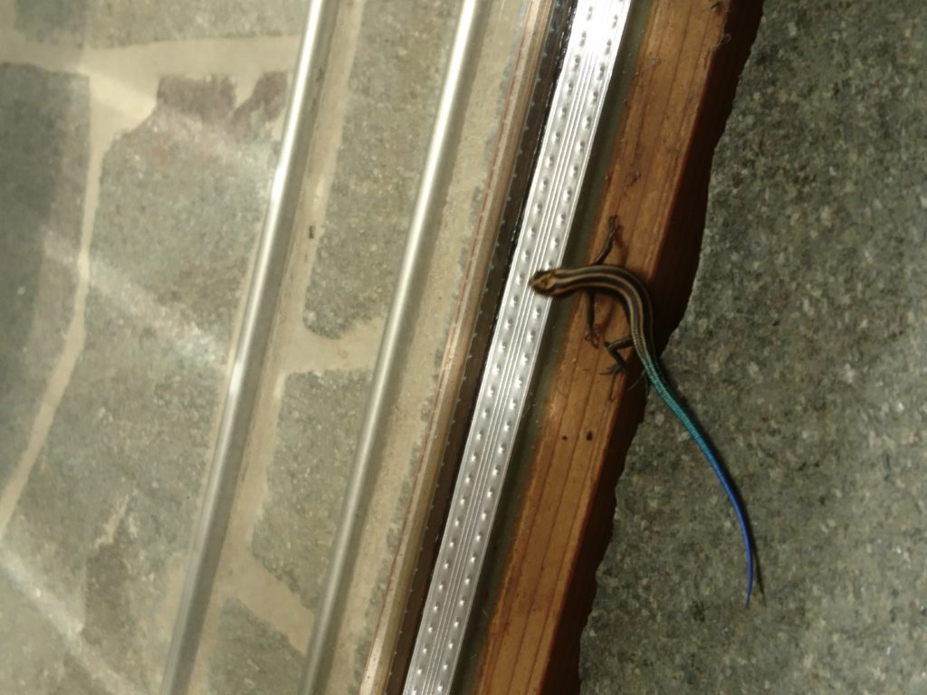 わが社の虫博士によるとこれはニホントカゲの子供だそうです。