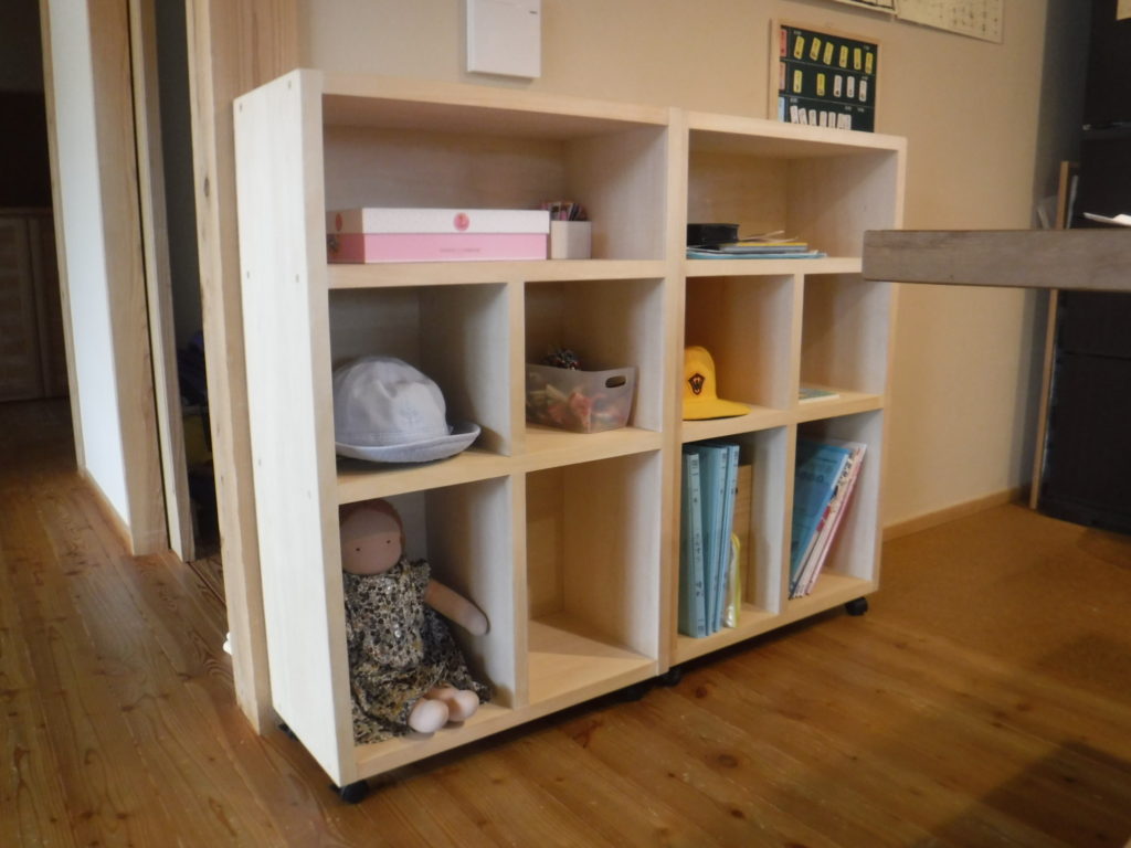棚は敢えて可動棚にせず固定してあります。実際使用していただいて大変喜ばれていたので良かったです。帰りがけにお子さんから「ありがとう」って言われて私も嬉しくなりました。