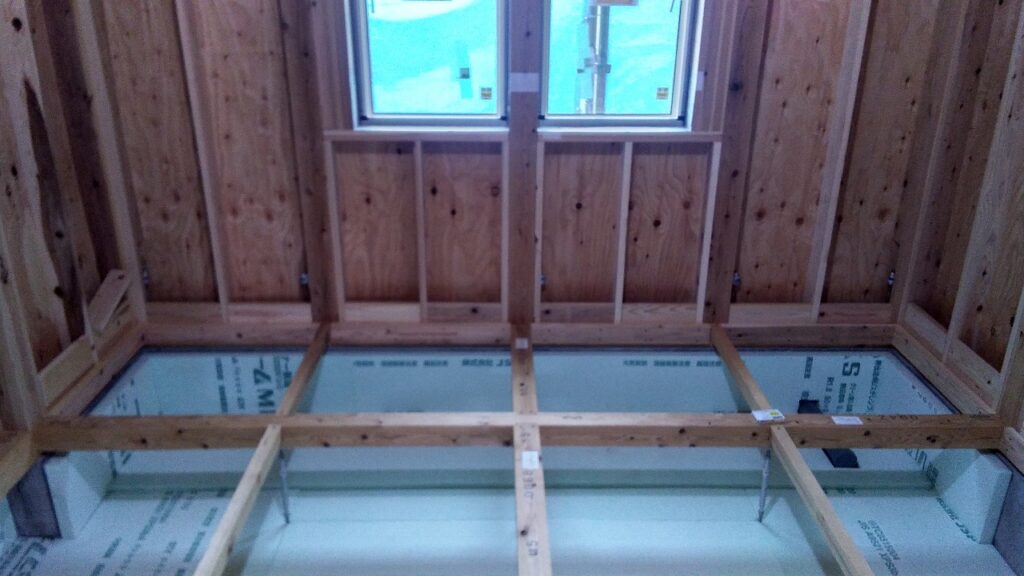 全体に敷きこむと暖かさを感じることができます。これからの季節室内の作業は快適で、大工さんの作業もきっとスムーズに進むことでしょう。