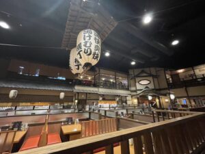 中に入ると大きな吹抜けがあり、中央には大提灯がかかっていました。