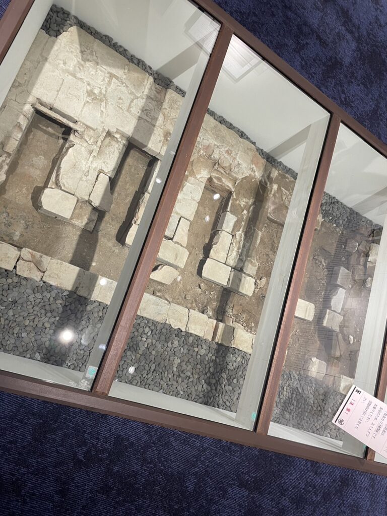 ↑改修工事で床下から発見された「煉瓦製カマド跡」
