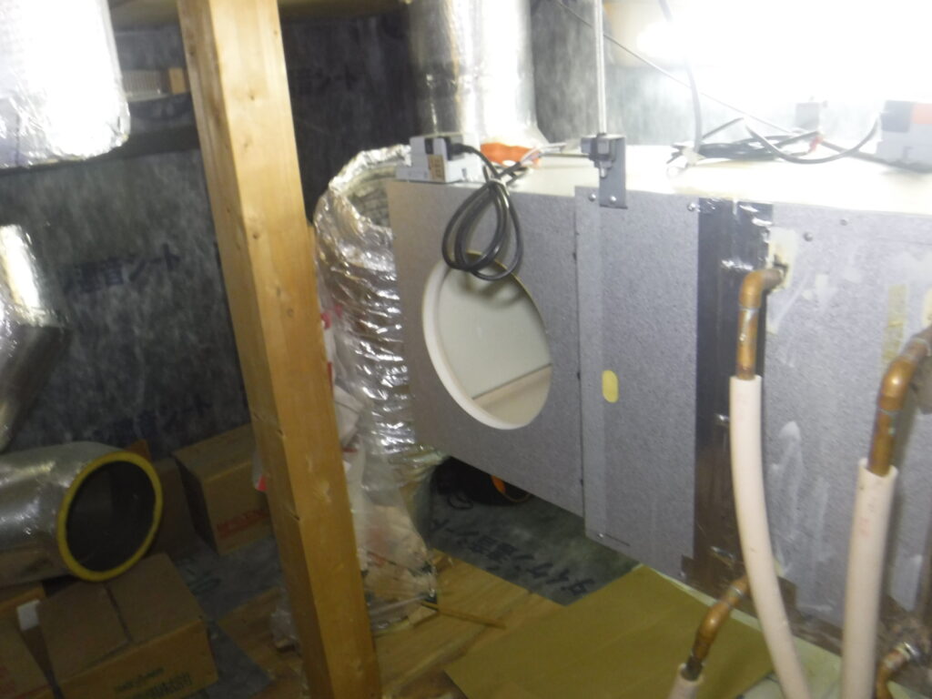 取付完了です。最後に電源を入れてモーター動作の確認、ダンパーの動作、向きが合っているか確認して作業終了です。OMはこれから活躍する季節になります。築年数がたつと色々な不具合がでてきますが、出来る限り対応していきますのでご相談ください。