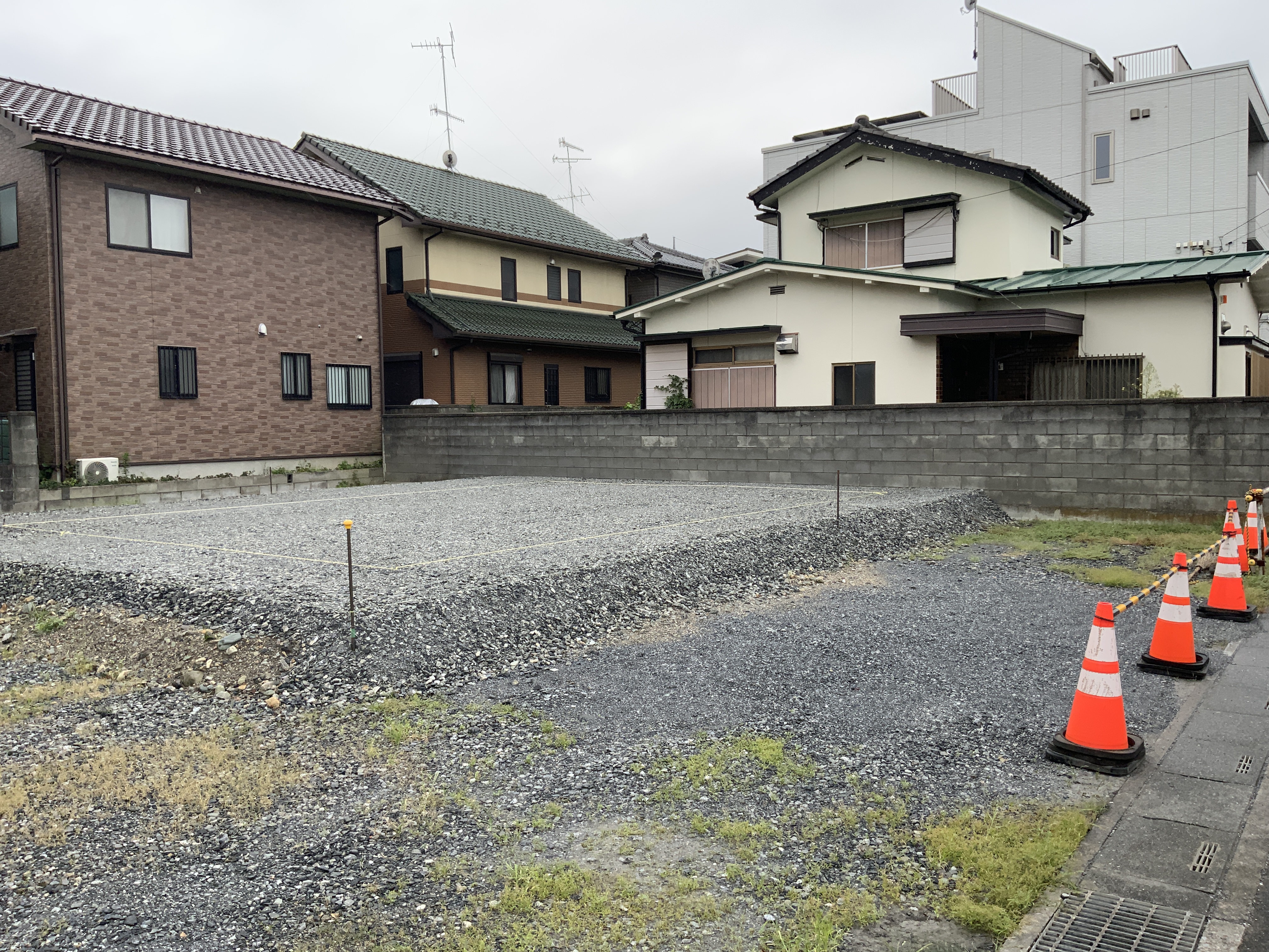 まずは、新しく始まる現場で建物位置をロープで張って、