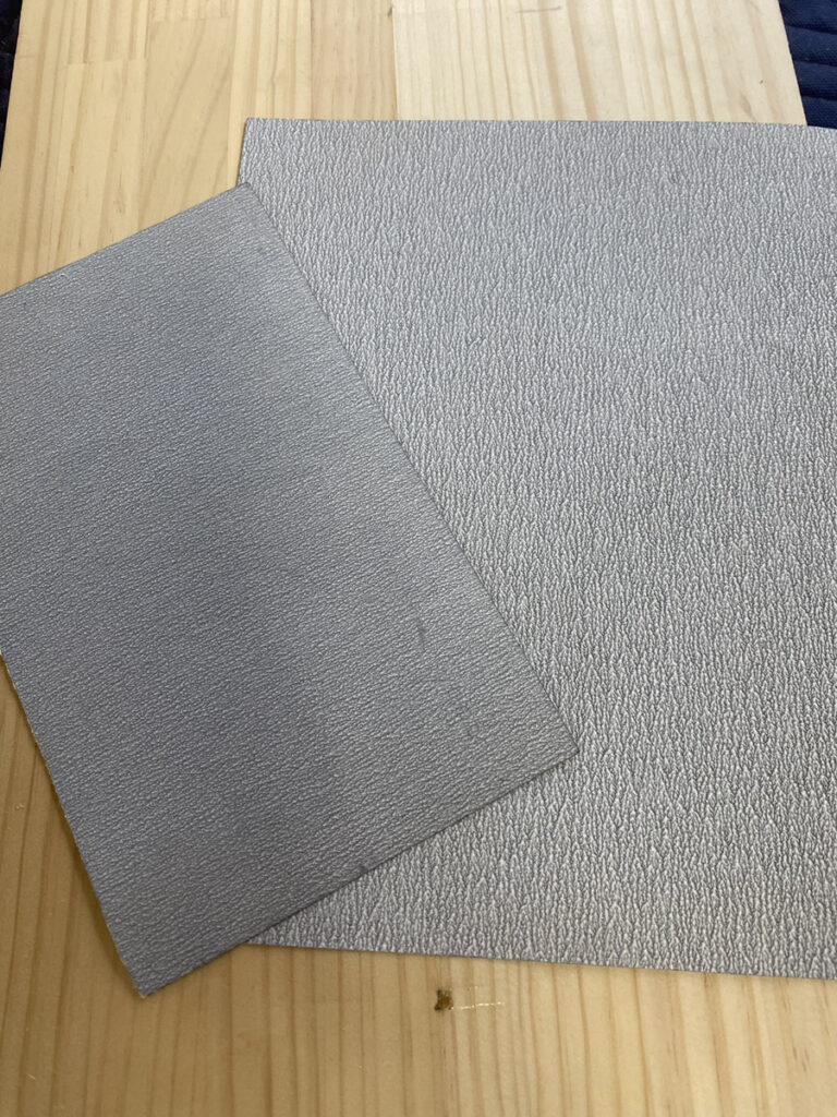 粗さが違う2種類のペーパーを使います。先に粗く削ってから、目の細かいほうで表面を仕上げていきます。