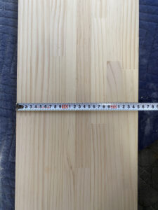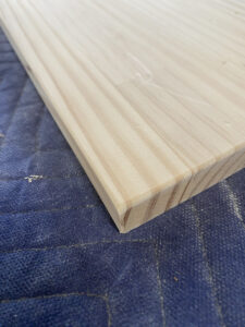 さて、前回くっつけた2枚の板がしっかりと固まっています。片方の板が日焼けもしていたので、まずはペーパーを当てます。