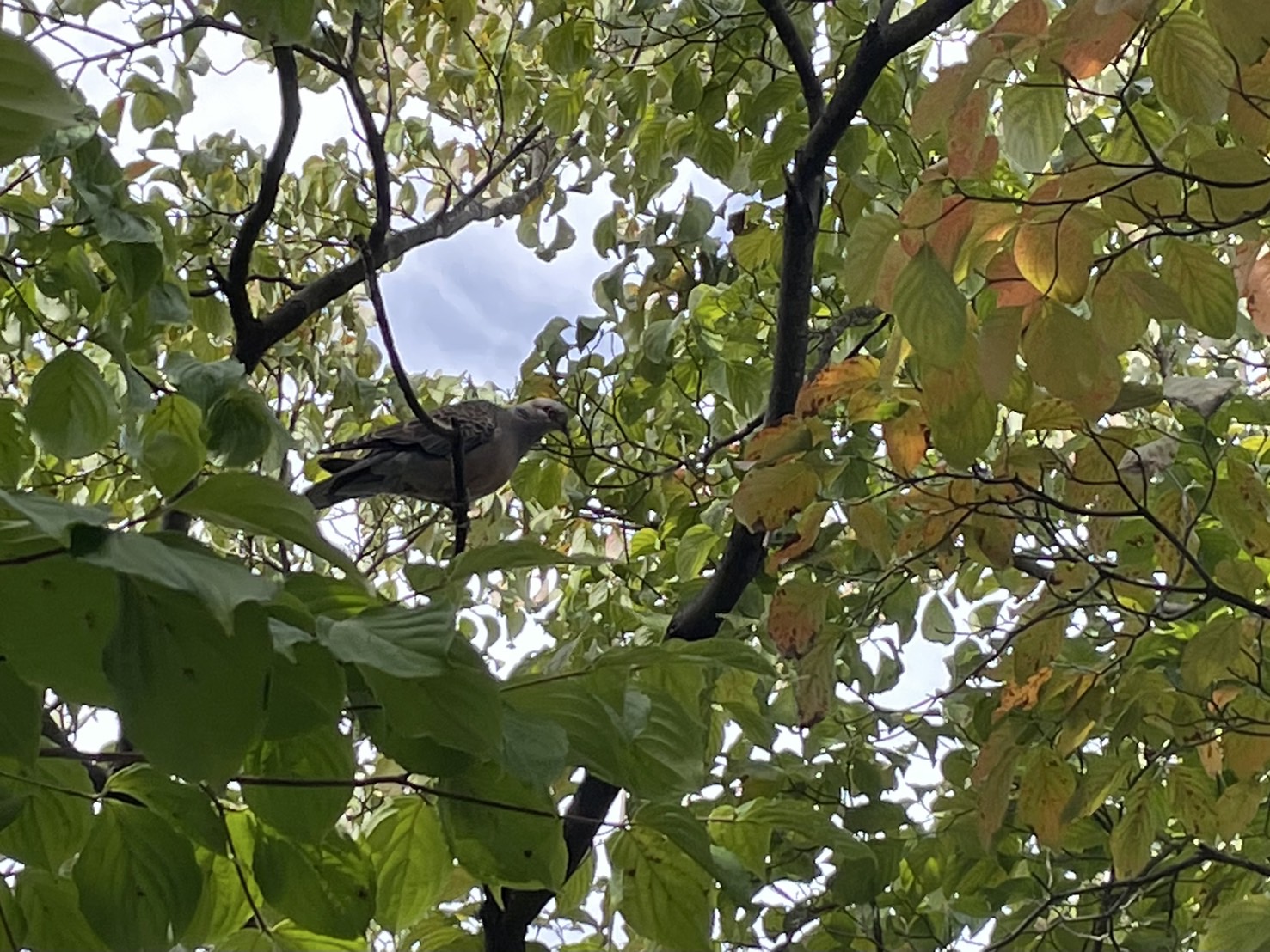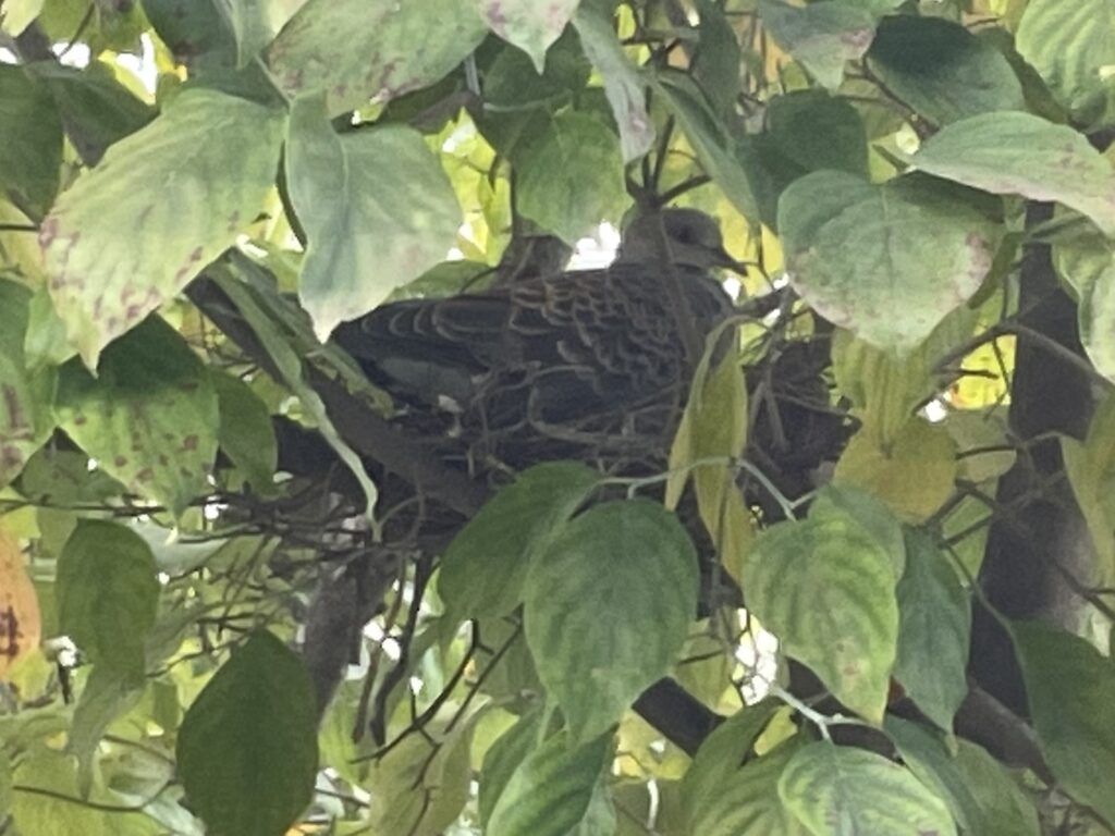 家や庭の木などに鳥の巣ができた場合、鳥獣保護法により、野生の鳥の卵は捕獲や採取等が禁止されており、ヒナや卵がある場合は触れたり移動させたりもできないとのことなので、キジバトの子育てを見守ることにしました。