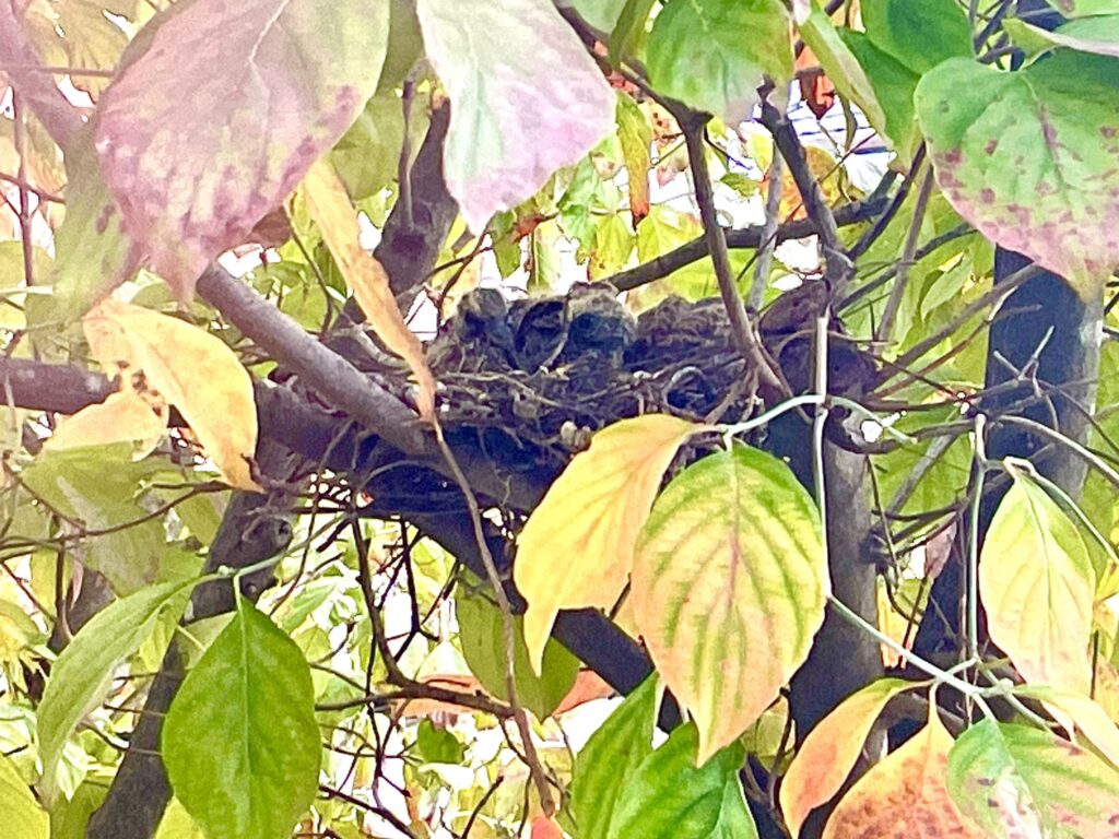 近くに親鳥の姿もなく、静かにじっとしてこちらを見ている姿を朝確認し、しばらくしてからまた見に行ってみると…巣に居ない!
