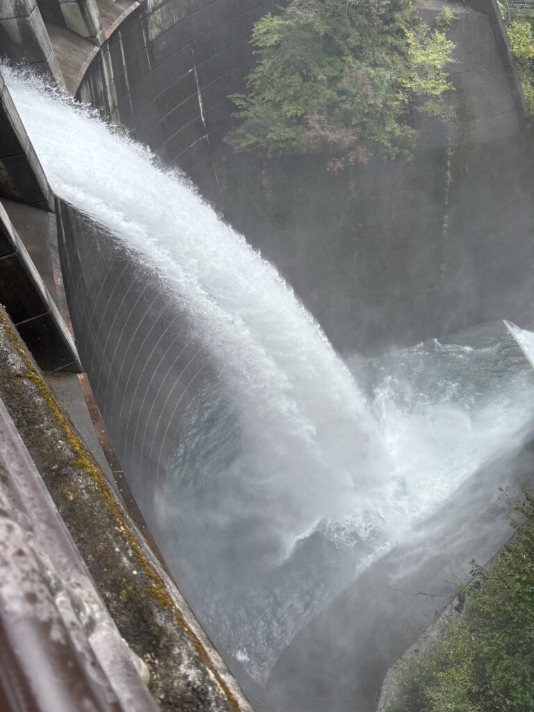 まずはダムと四万湖に行きました。少し暖かい日に訪れたのですが、ダムの水しぶきで涼しかったです。