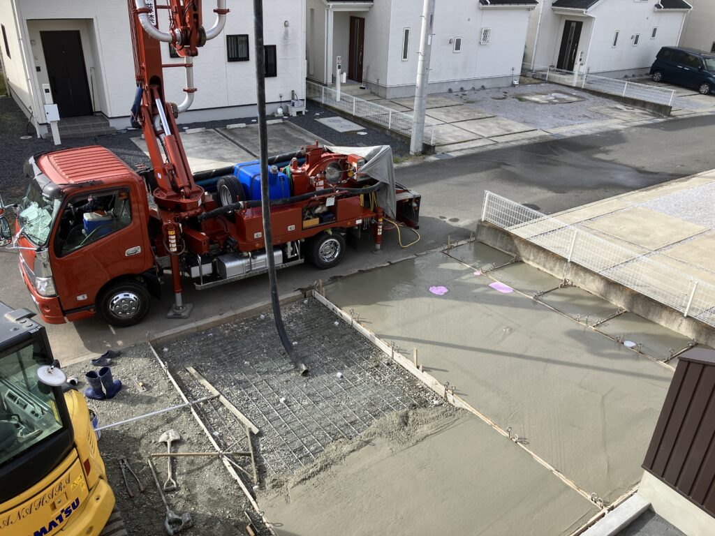 駐車場のコンクリートを打ちまして、まもなく完了となります。
