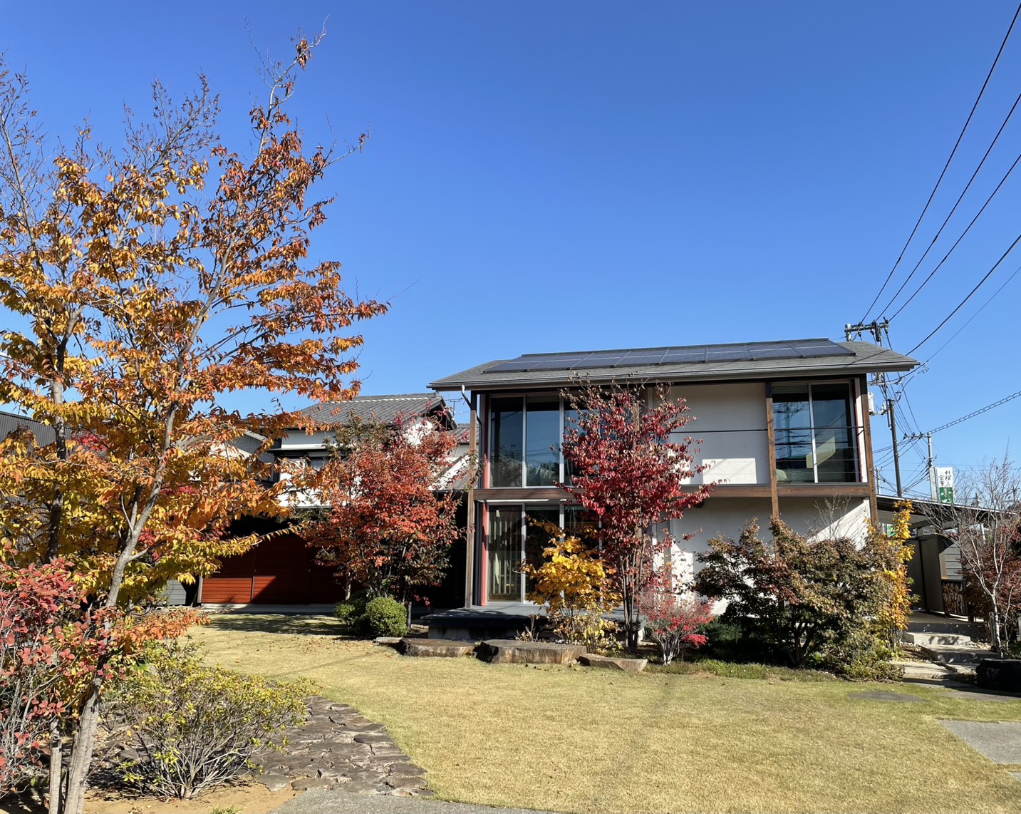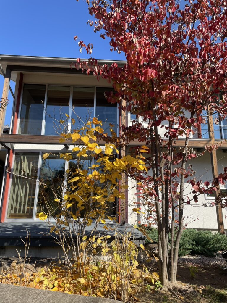 色とりどりの落葉が絨毯のように降り積もる様は風情がありますが、住宅街では近隣にご迷惑がかかってしまいますし、展示場として手入れされたお庭も見ていただけるように、スタッフ一同が毎日お掃除しています。