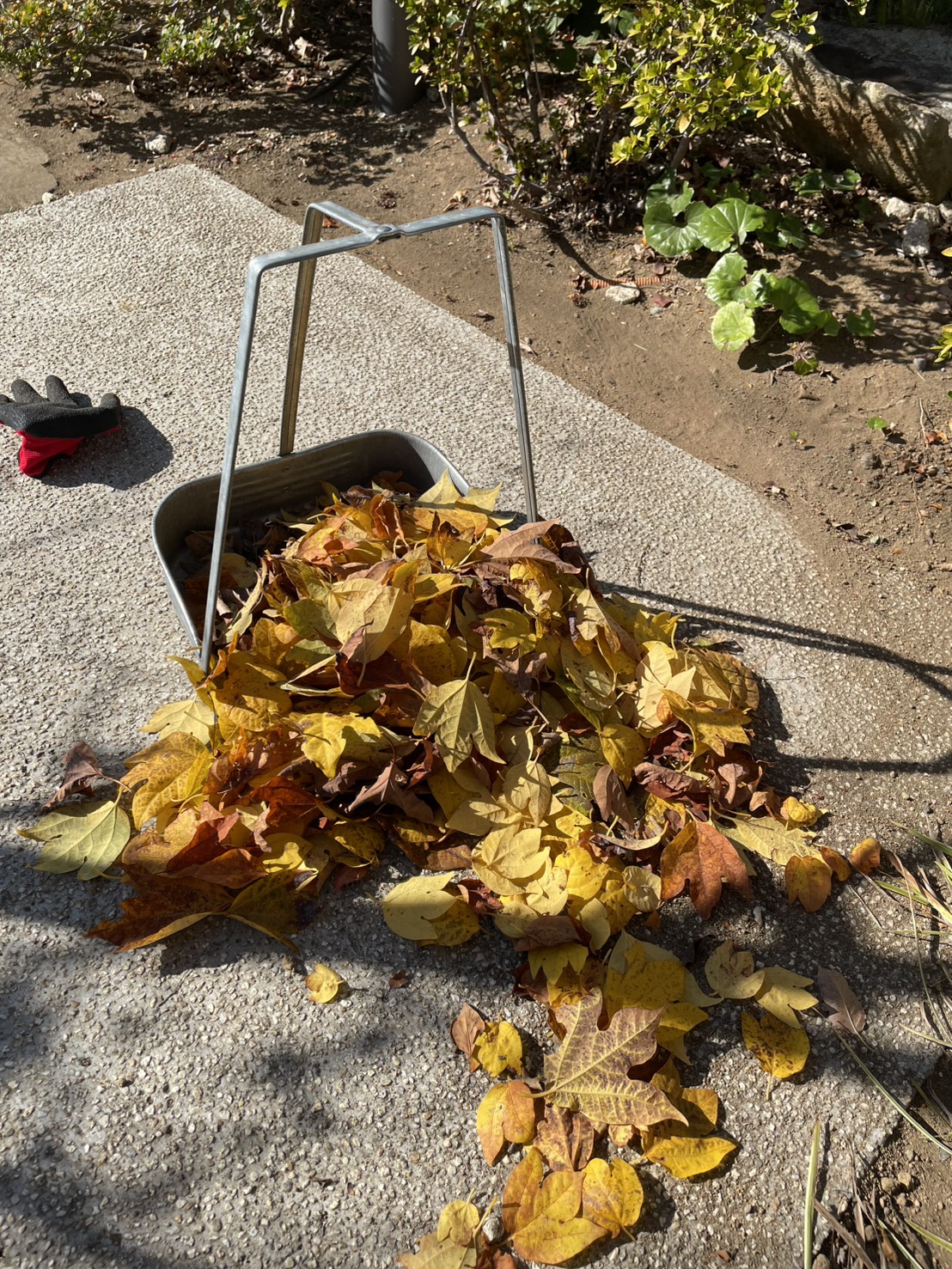 紅葉シーズン=落葉シーズン到来!ということで、毎年恒例の落葉掃除に奮闘しております。