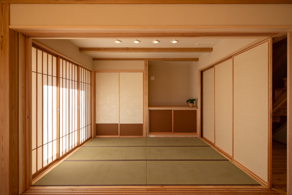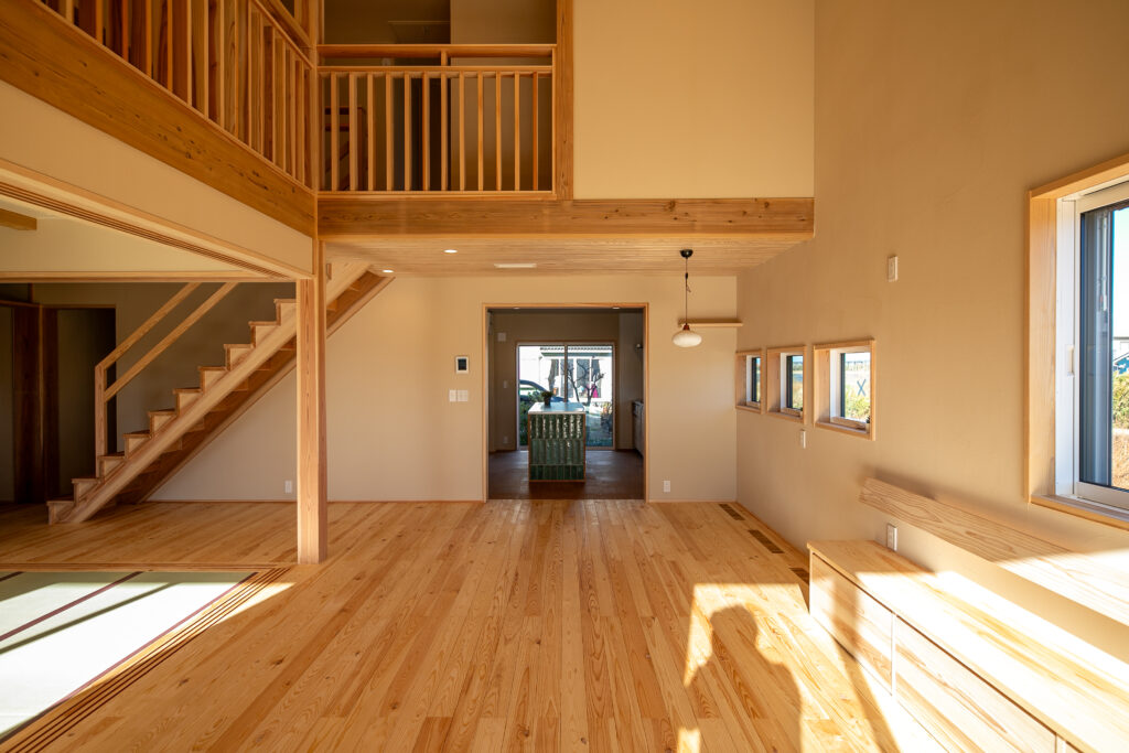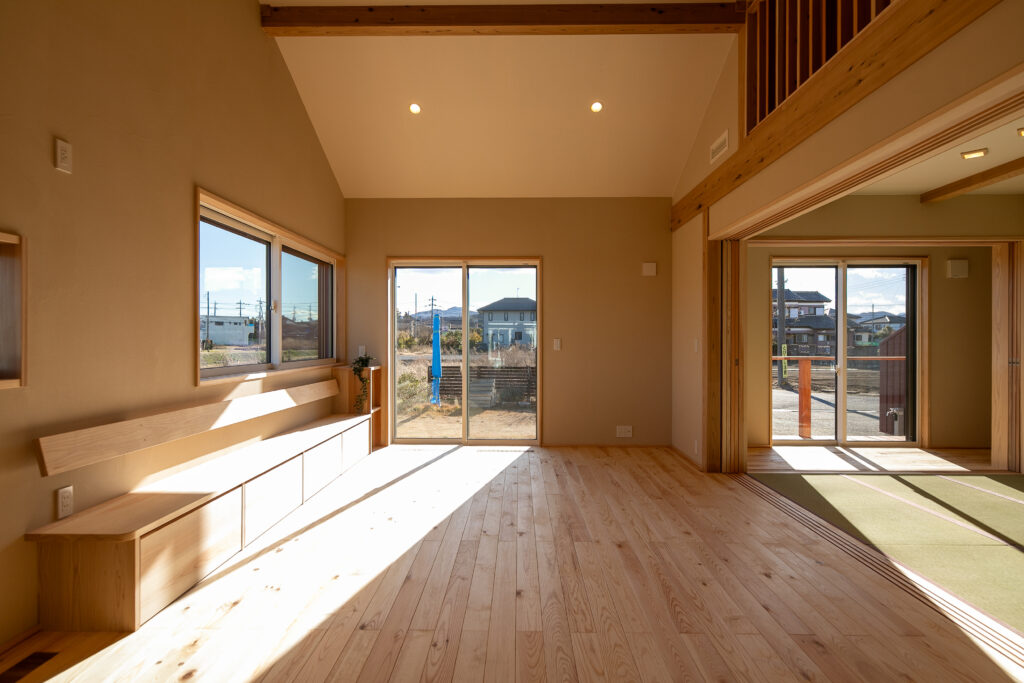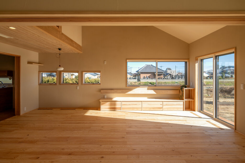 連窓の窓の下にはダイニングテーブルが置かれます。
