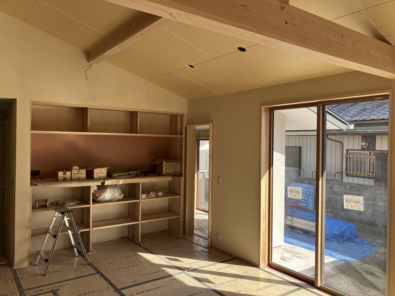 2/7.8に完成見学会を予定している、寄居町S様邸は仕上げ工事に入りました。