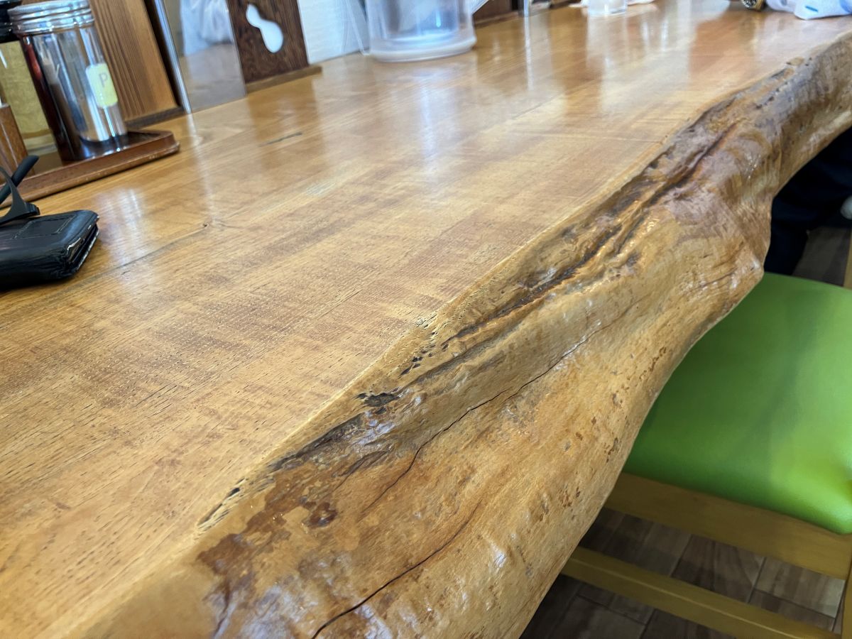 2軒ほどの長さのこのカウンター席の板・・・