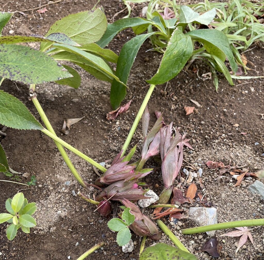 寒さと水不足の厳しい環境下ですが、今年もクリスマスローズの蕾がたくさん出始めました。