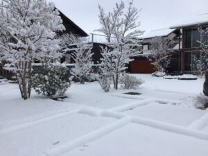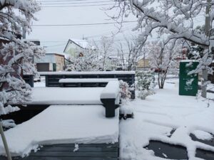 玄関アプローチ、駐車場、駐車場までの道路や歩道、ウッドデッキなど、数時間がかりの除雪は大変でしたが、無事にお客様の車を迎え入れることができて安堵しました。