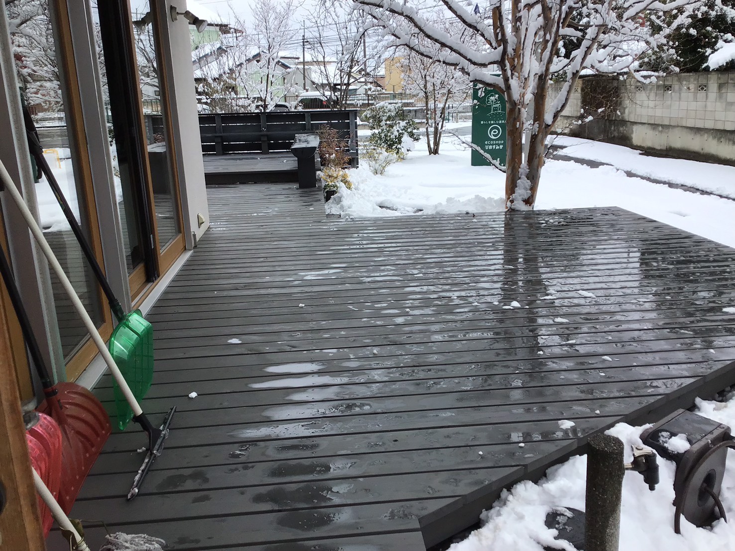 先日のような雪の日は、各展示場も朝から雪かきに追われます。