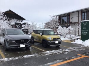 ブログやYouTubeでも除雪作業の話題がアップされていましたが、こちらS-boxとエコショップでも当日はいつもより早く出勤して、開場10時のお客様の来場に間に合うようにスタッフ2人がかりで除雪しました。