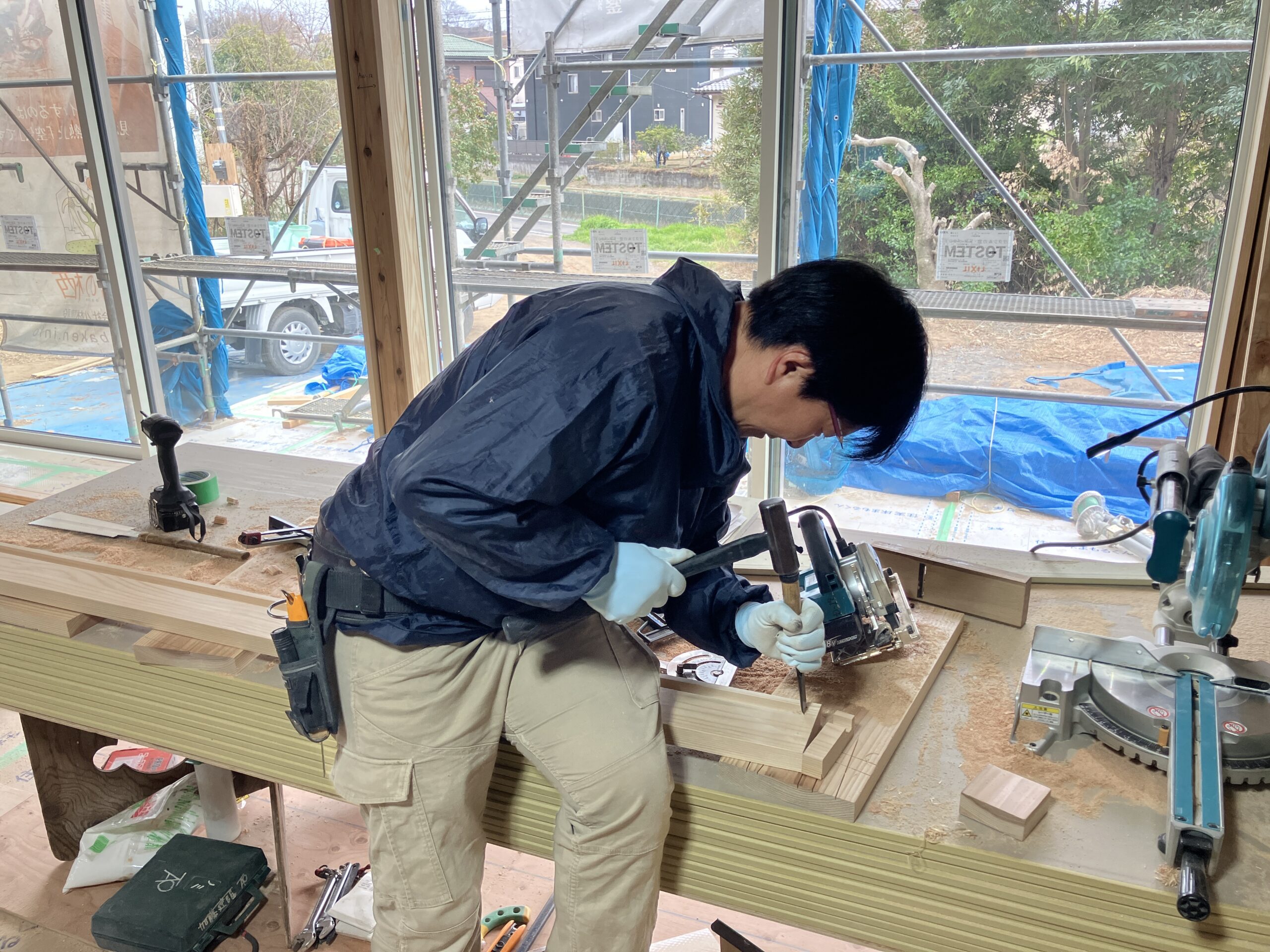 ちょうど大工さんが建具枠の溝加工をおこなっていました。