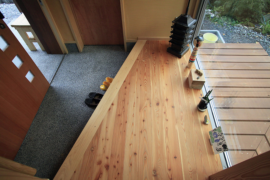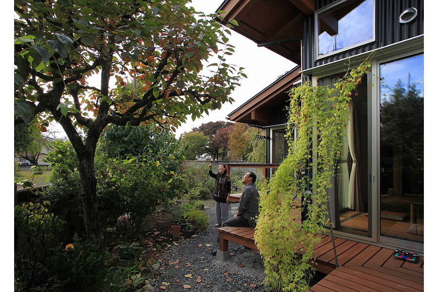 変形の土地を上手に生かし、住まいやすく、建物の良さが発揮される配置となっています。方位も45度振れているので、コーナーには窓を配置。気持ちの良い風が流れ込んできます。天井も高く、開放的でダイナミックなリビング空間と、1階での暮らしをメインに考えられたプランが特徴です。