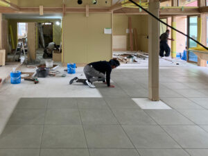 床のタイル張りを施工しています