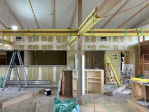 屋根に防水シートが葺かれ、トップライトも設置されました