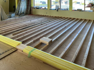 小上りの床下地、根太を組み立てています