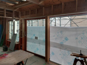 木製サッシの取り付けを進めました