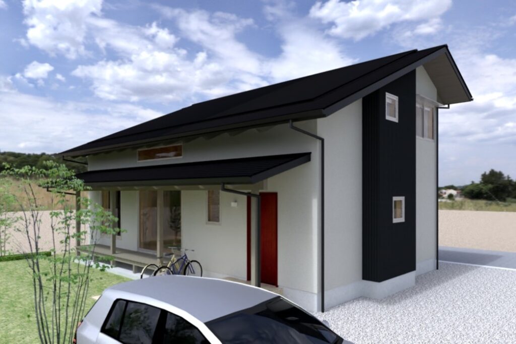 *シンプルな大屋根(への字屋根)と大きな吹抜けで開放的な空間