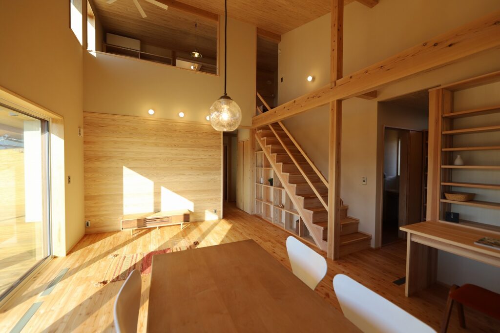 大きな吹抜と大開口の窓で開放的な空間でした。