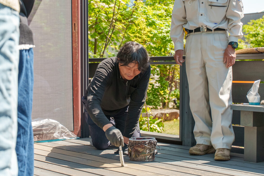 「木の床のお手入れ方法」や「ウッドデッキの塗装」を実際に体験しながら学んでいただきました。